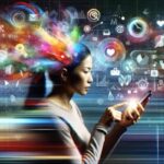 A futuristic digital interface showing personalized content recommendations with vibrant graphs and holographic elements.