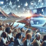 A digital workspace editing MP4, AVI, and MOV files into short clips for a vibrant blog, with engaged viewers on screens.