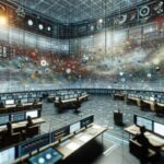 Content creator in a modern digital studio, surrounded by screens of video thumbnails, holding a glowing checklist for strategic video selection.